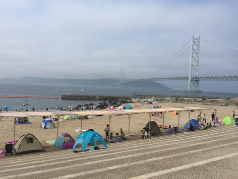わが家は、9時半頃に西駐車場に到着。車から荷物をもって、海の方に歩いたら、そこは海水浴場が!