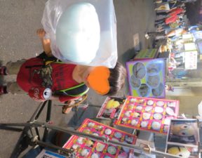 市場を出て横の路地で見つけたのは、綿菓子の屋台。