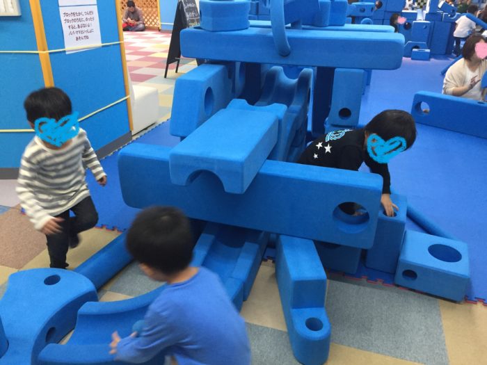 9時台は、まだまだ遊びに来る家族も少なく、すべての遊びが、のびのび使えました。昼前になってくると、入口の4階を中心に混み始めます。2時頃には、どこの遊びもたくさんの人でごった返しました。