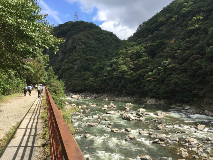渓谷沿いはさわやか、休憩ポイントが難しい