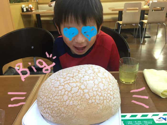 そもそも子どもたちは、メロンパンが大好きなのですが、このパンは現地で焼き立てだけあって、なかなか美味しかったです。