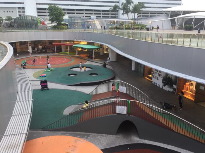 フード・リパブリックというフードコートで夕食を食べようと思っていたのに、遊び足りない長男は、噴水を見つけ、そして充実したこども広場を発見!