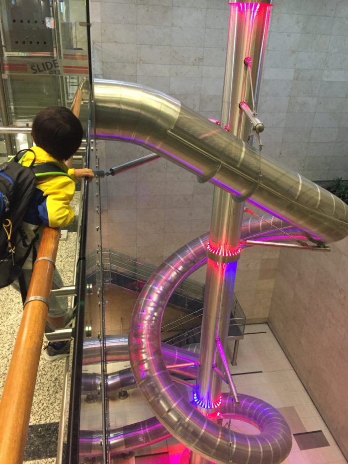 チャンギ国際空港のトランジットエリアの外には、巨大な滑り台もありました。