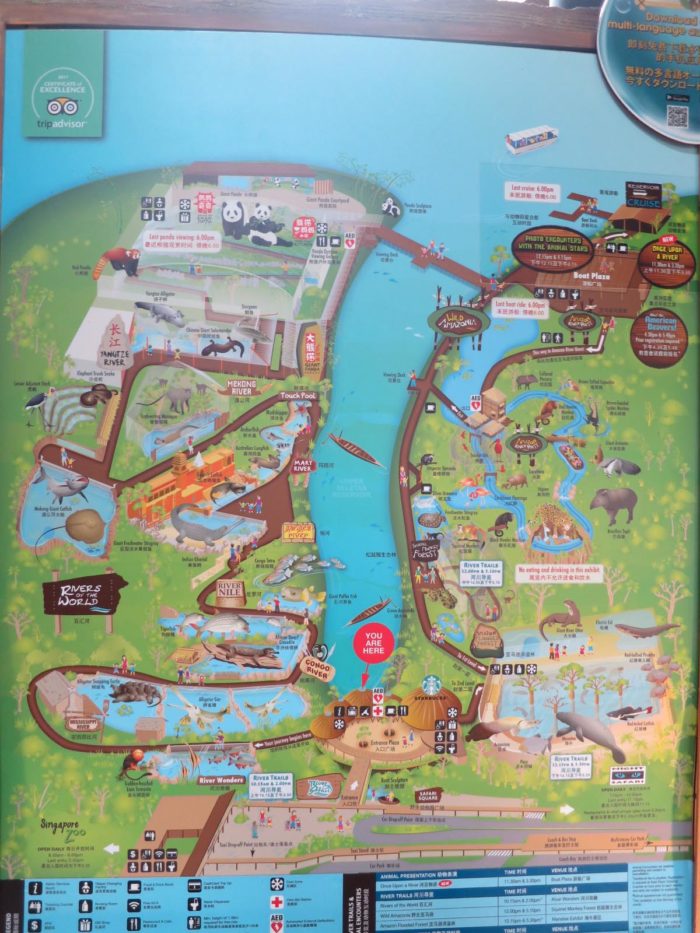 一番奥のパンダ展示とレストラン、デッキを渡った先のリバーサファリクルーズ(無料)とアマゾンリバークエスト(5ドル必要)、そして「Once upon a River」という動物ショー(無料、2018年夏より開始)が時間のかかるポイントです。