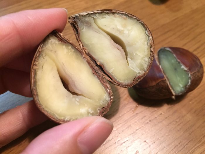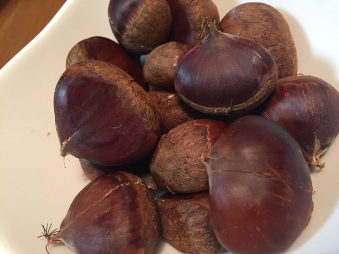 最初に、見かけの悪い縮んでしまった栗を食べました。
