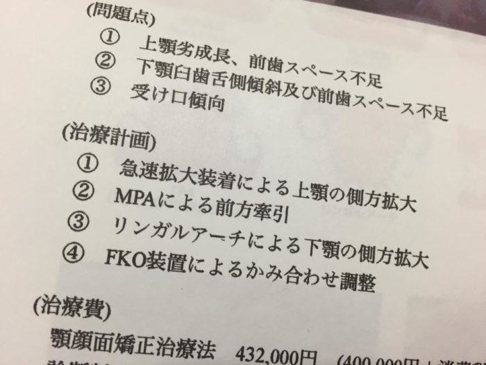 ぎくりとなる金額ですが、近所でも評判の良い歯医者さんだし、小学校6年生ぐらいまで治療が終わるまでは、大きな追加料金はないということだったので、腹をくくって支払うことにしました。