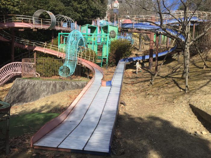 冒険広場には、ローラコースターが3台分組み合わさった遊具がありました。