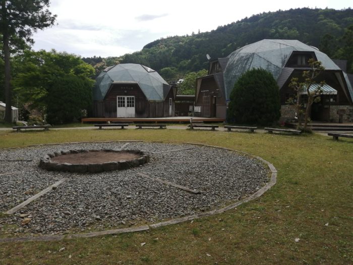 受付の前は、キャンプファイヤーサークルになっていて、その周りにバンガローやコテージがありました。